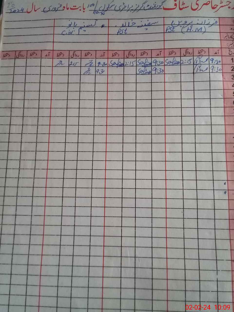 | CNIC | Full Name | Designation | R/C | Absence During Last Calender Month |
