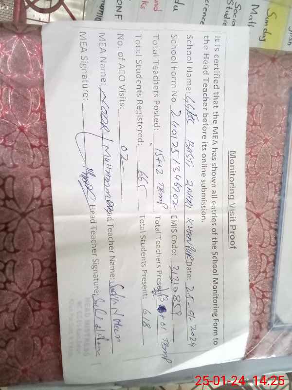 | Certified that this School was Inspected by the Undersigned MEA/DMO Today and the Information Stated Above is as Per Record. | |||||