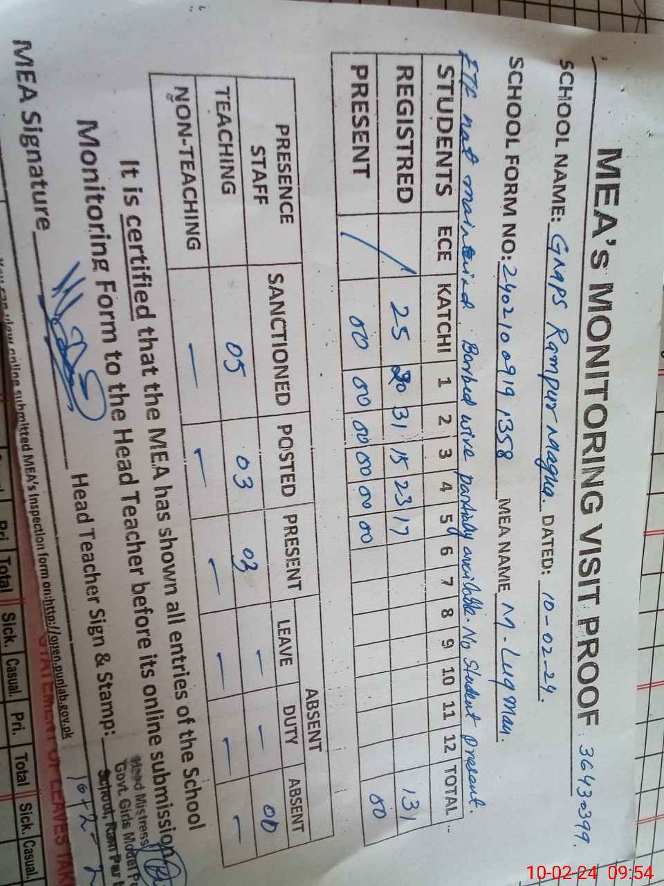 | EMIS Code: 36430399 | Name of School: GMPS RAM PUR MAGHA, TULAMBA | |||