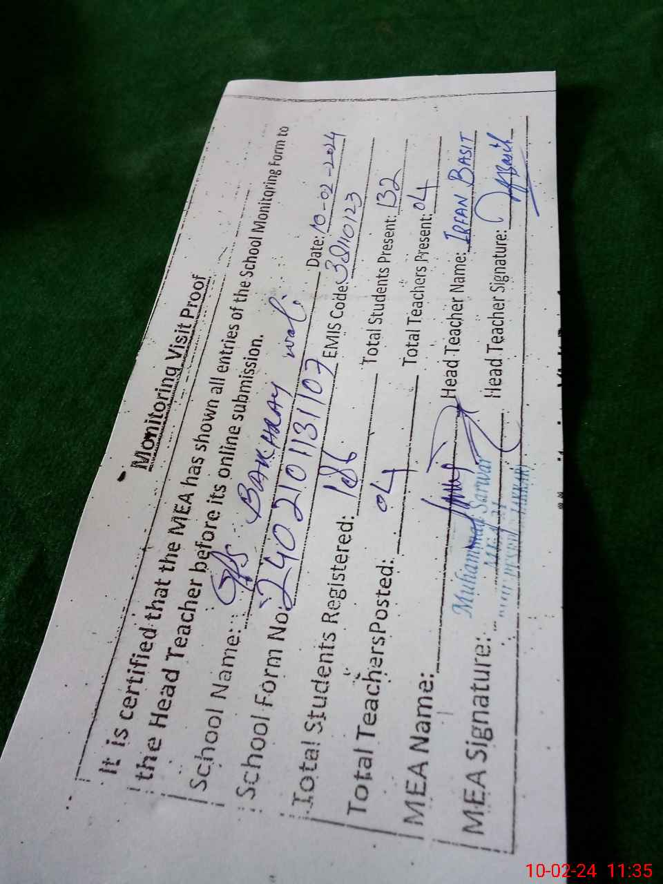 | EMIS Code: 38110123 | Name of School: GPS BAKHRAY WALI | |||