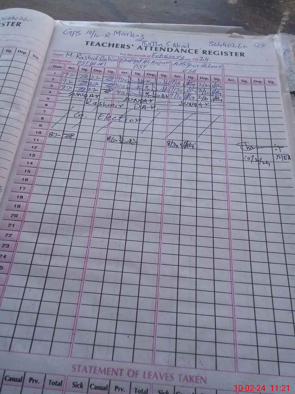 | Name: MRA**** Designation: (School Headmaster's/Headmistress's) PTC/JV Phone/Cell Number: 03**** |