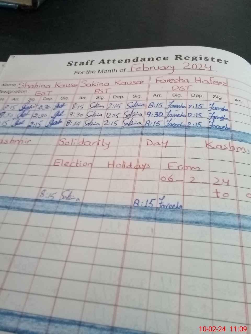 | CNIC | Full Name | Designation | R/C | Absence During Last Calender Month |
