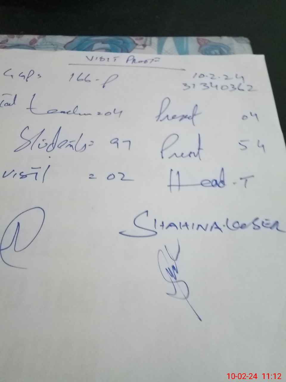 | Attendance Register | Head Teacher | MEA with School | Visit Proof |