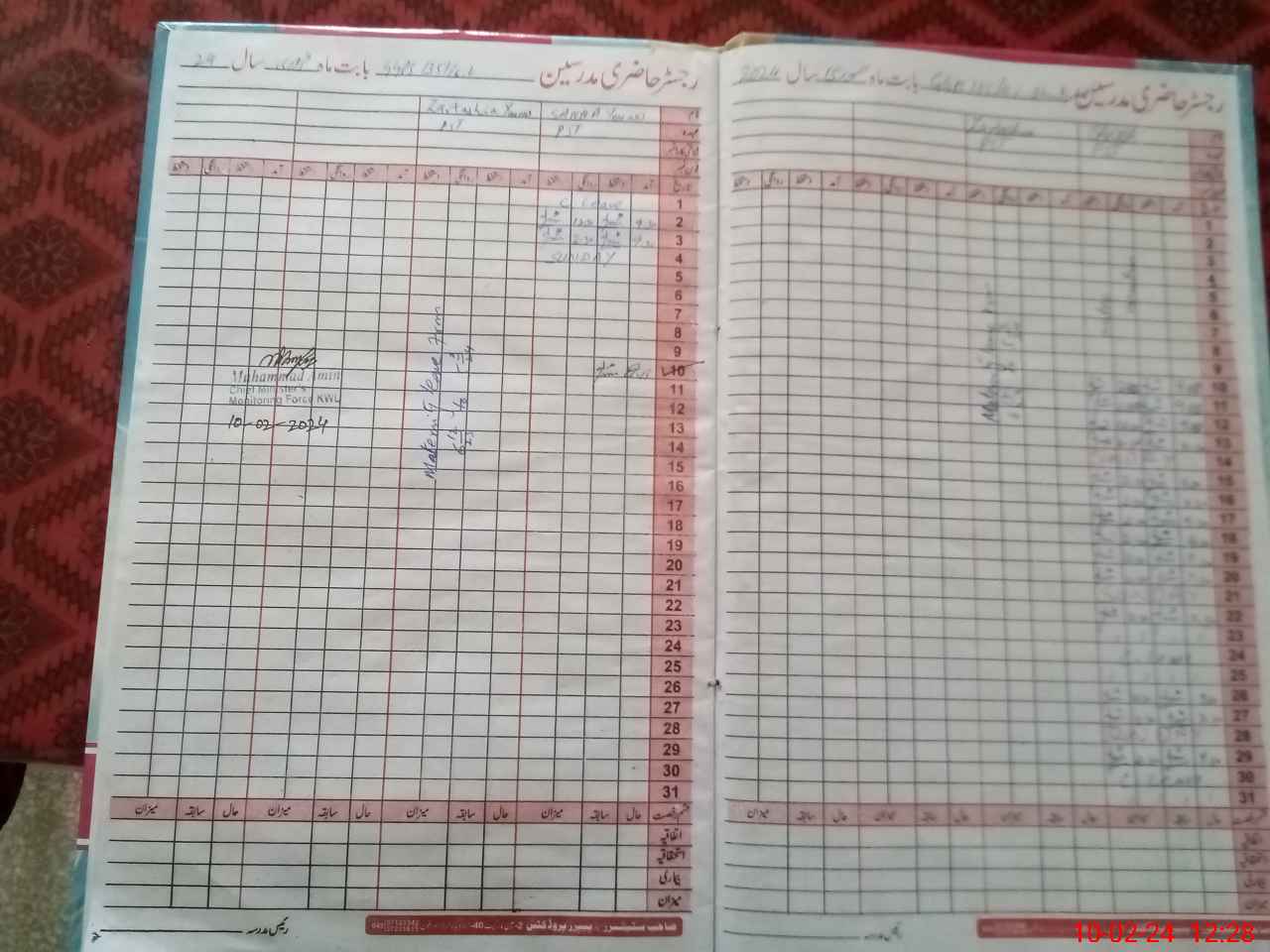 | CNIC | Full Name | Designation | R/C | Absence During Last Calender Month |