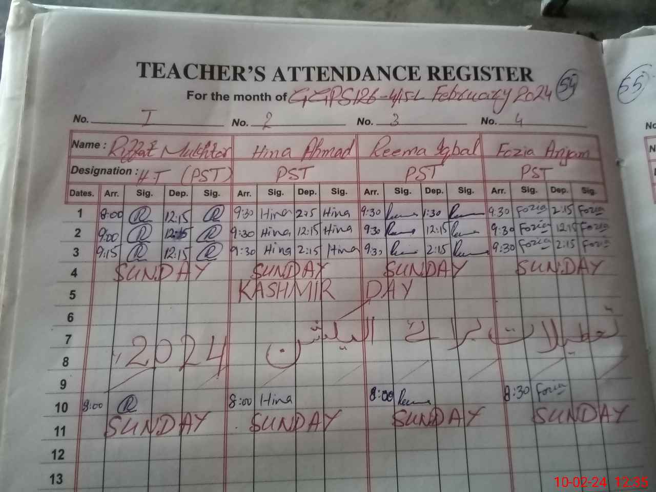 | Name: RI**** MU**** Designation: (School Headmaster's/Headmistress's) PST Phone/Cell Number: 03**** |