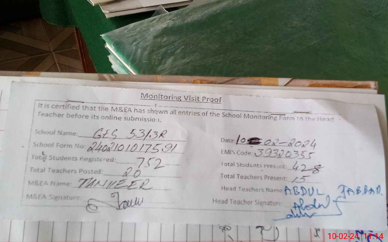 | Certified that this School was Inspected by the Undersigned MEA/DMO Today and the Information Stated Above is as Per Record. | |||||