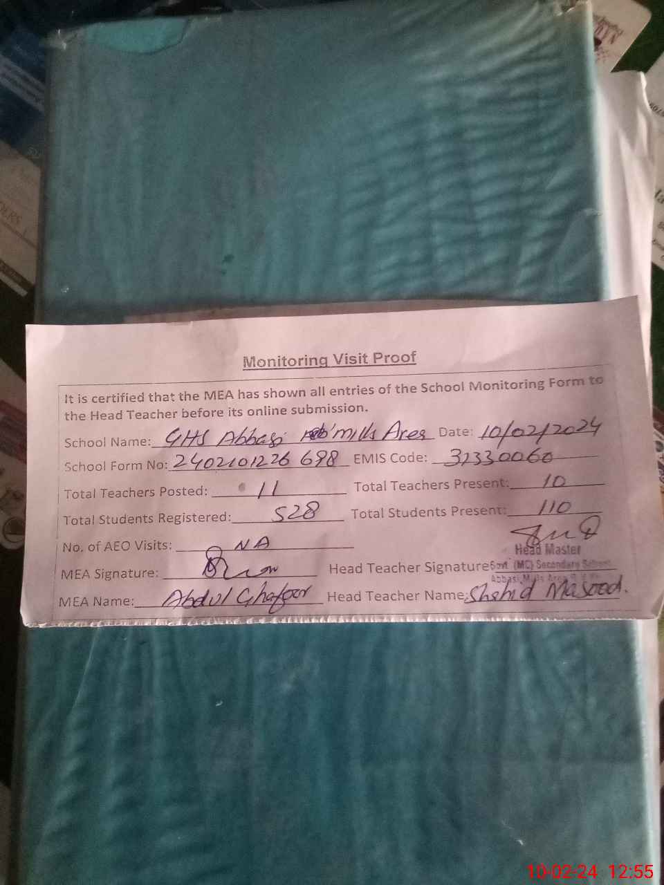 | EMIS Code: 31330060 | Name of School: GHS MC ABBASI MILLS AREA | |||
