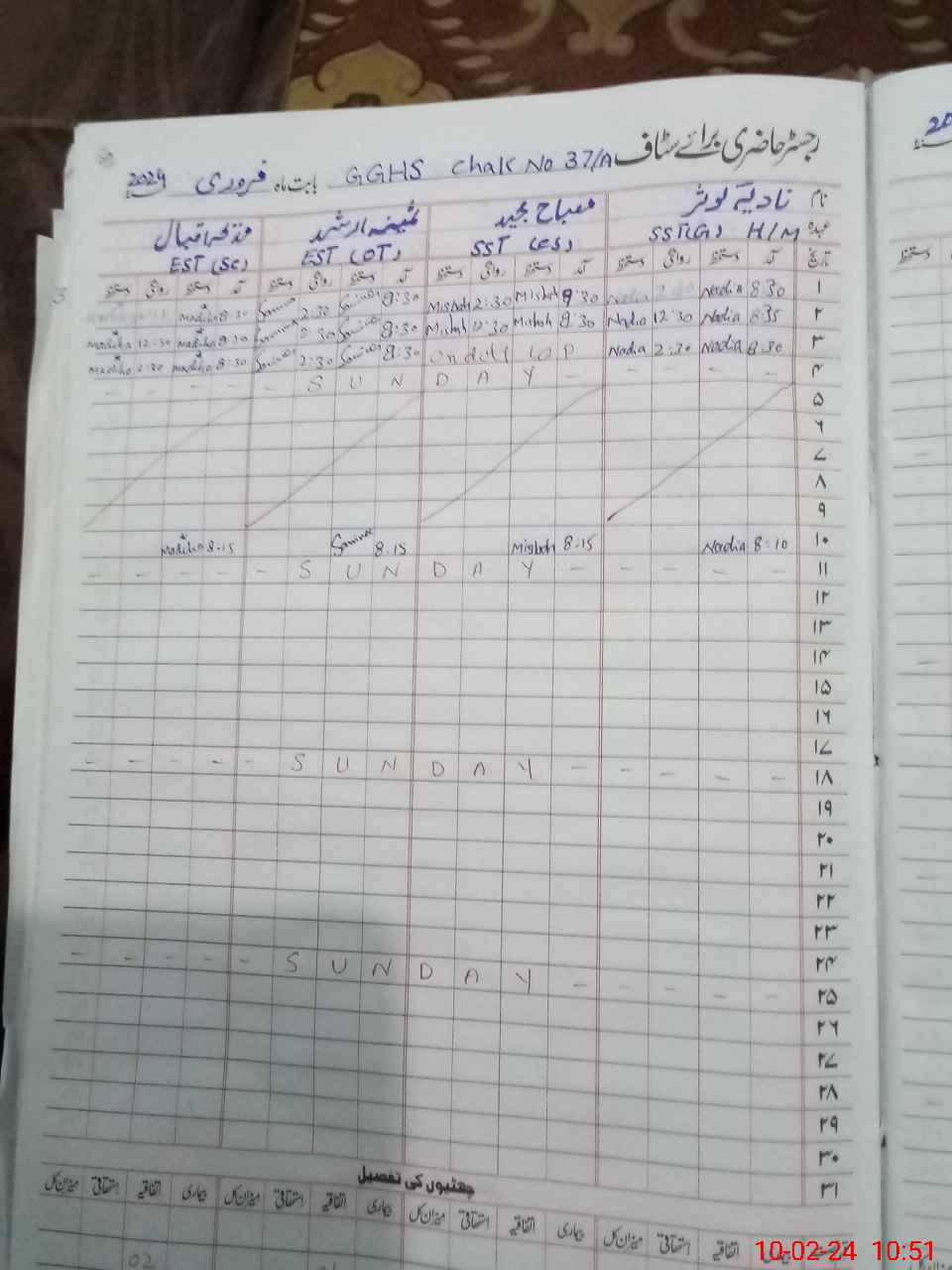 | CNIC | Full Name | Designation | R/C | Absence During Last Calender Month |