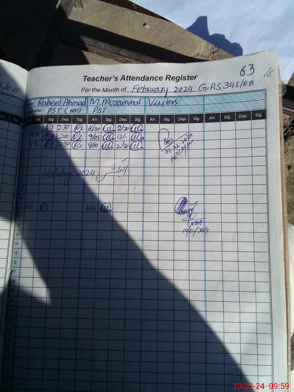 | Name: RA**** AH**** Designation: (School Headmaster's/Headmistress's) PST Phone/Cell Number: 03**** |