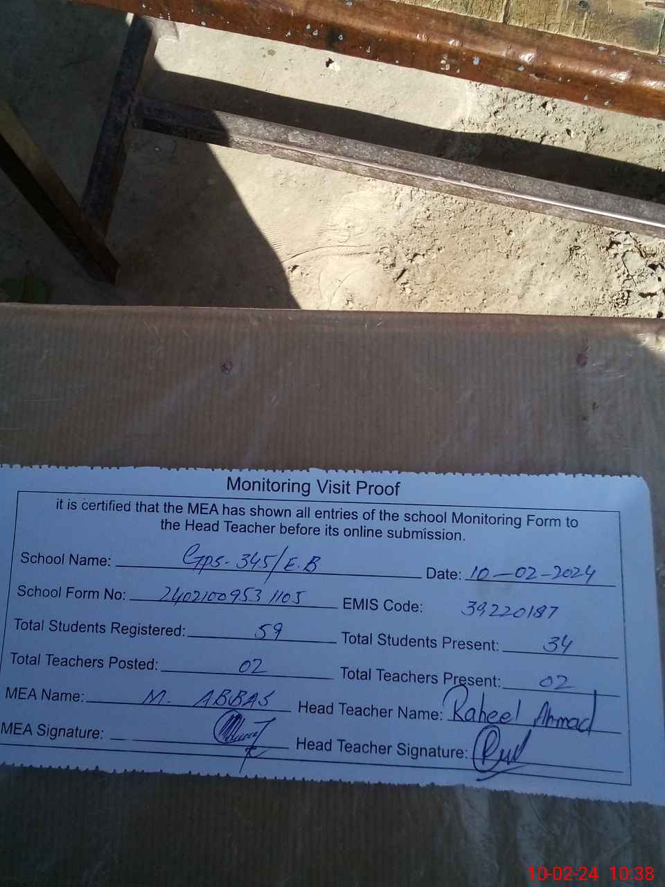 | EMIS Code: 39220187 | Name of School: GPS 345 EB ARIFWALA | |||