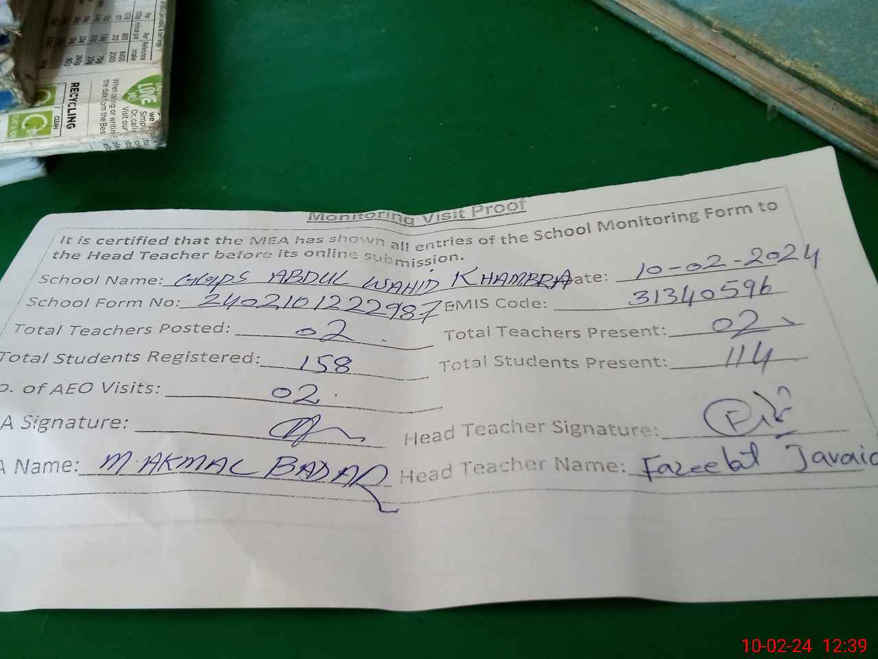 | EMIS Code: 31340596 | Name of School: GGPS ABDUL WAHID KHUMBHRA | |||