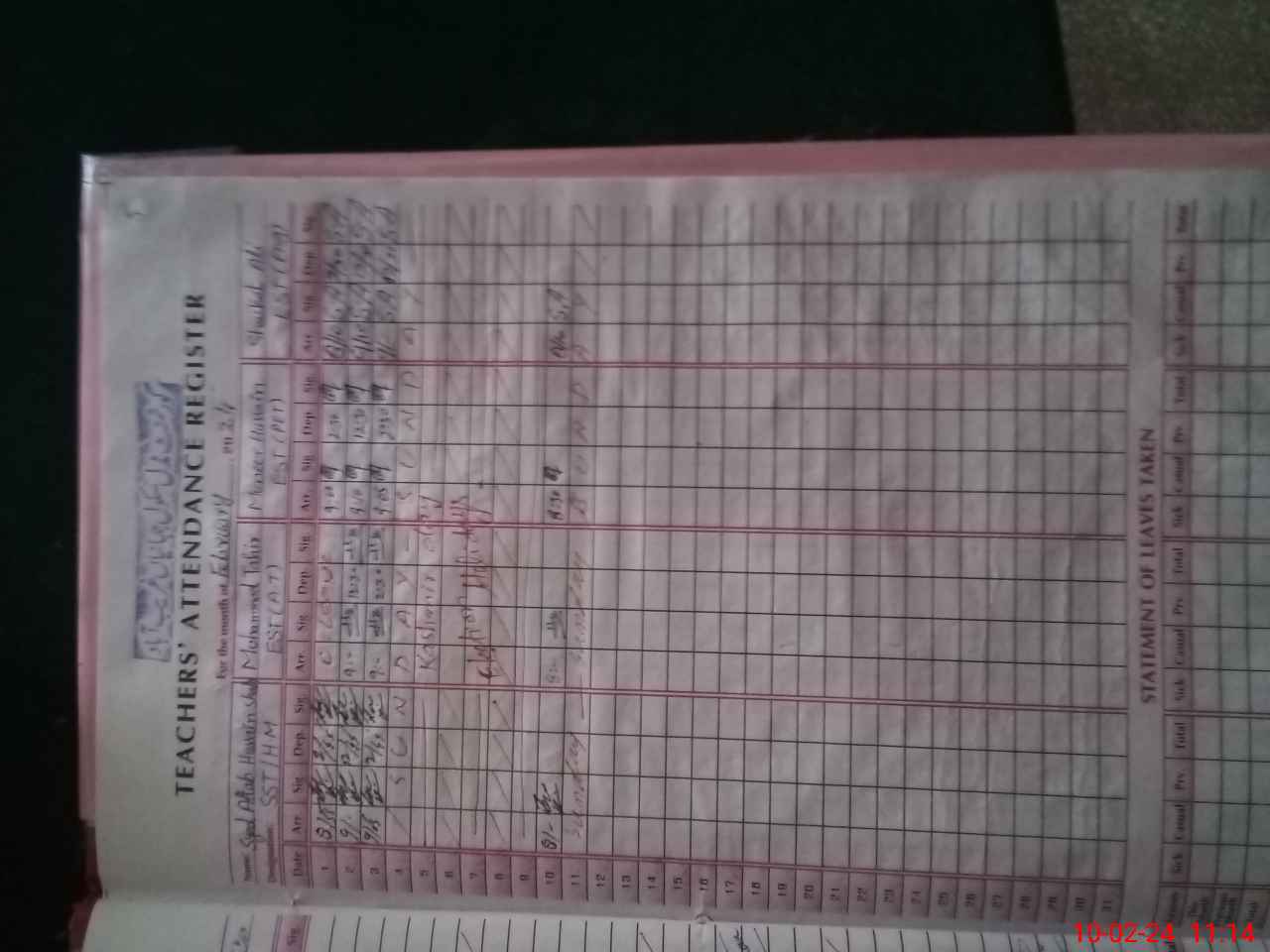 | CNIC | Full Name | Designation | R/C | Absence During Last Calender Month |