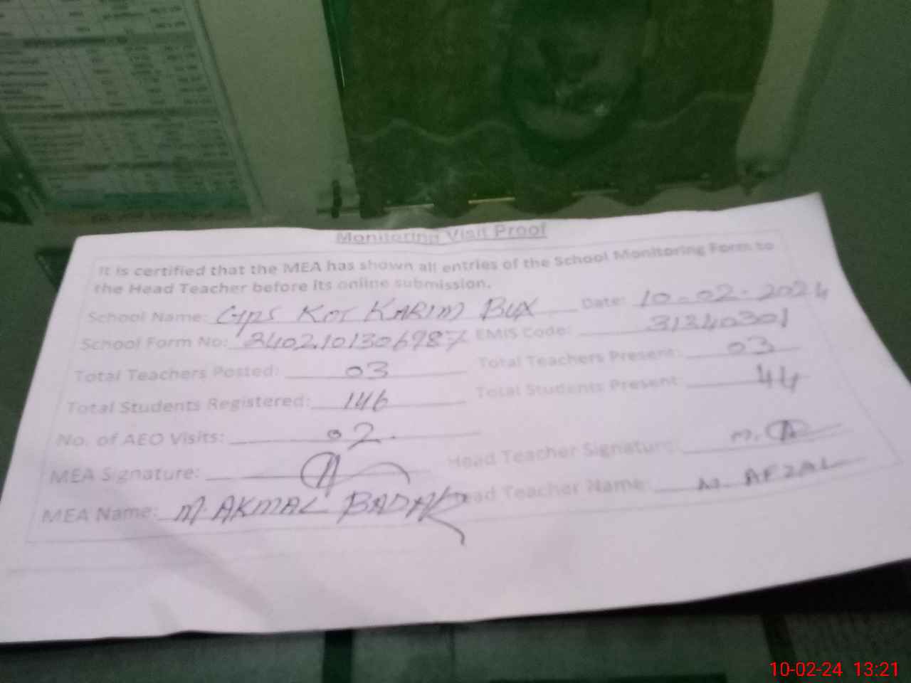 | EMIS Code: 31340301 | Name of School: GPS KOT KARIM BAKHSH | |||