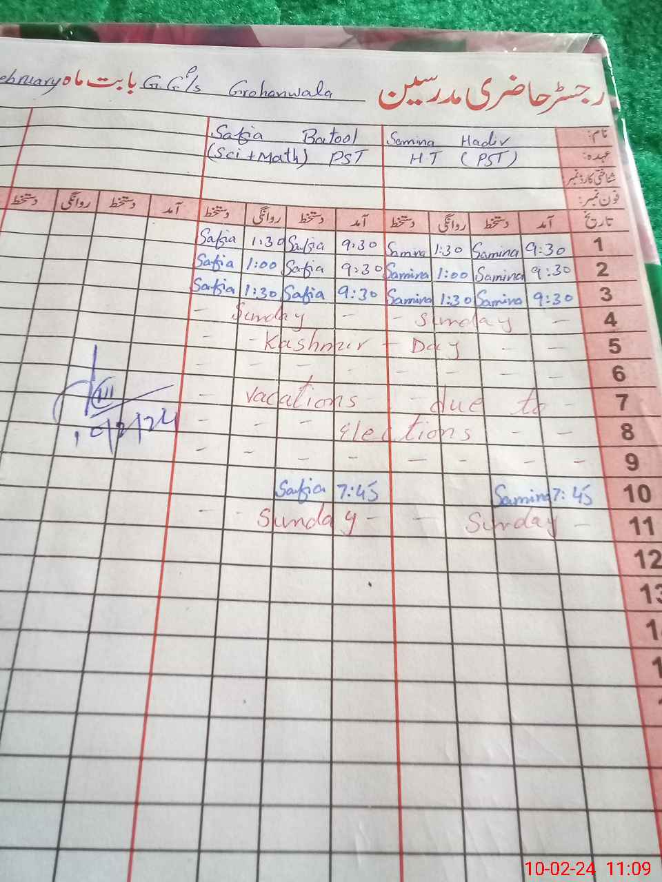 | Name: SA**** HA**** Designation: (School Headmaster's/Headmistress's) ESE (General ) Phone/Cell Number: 03**** |