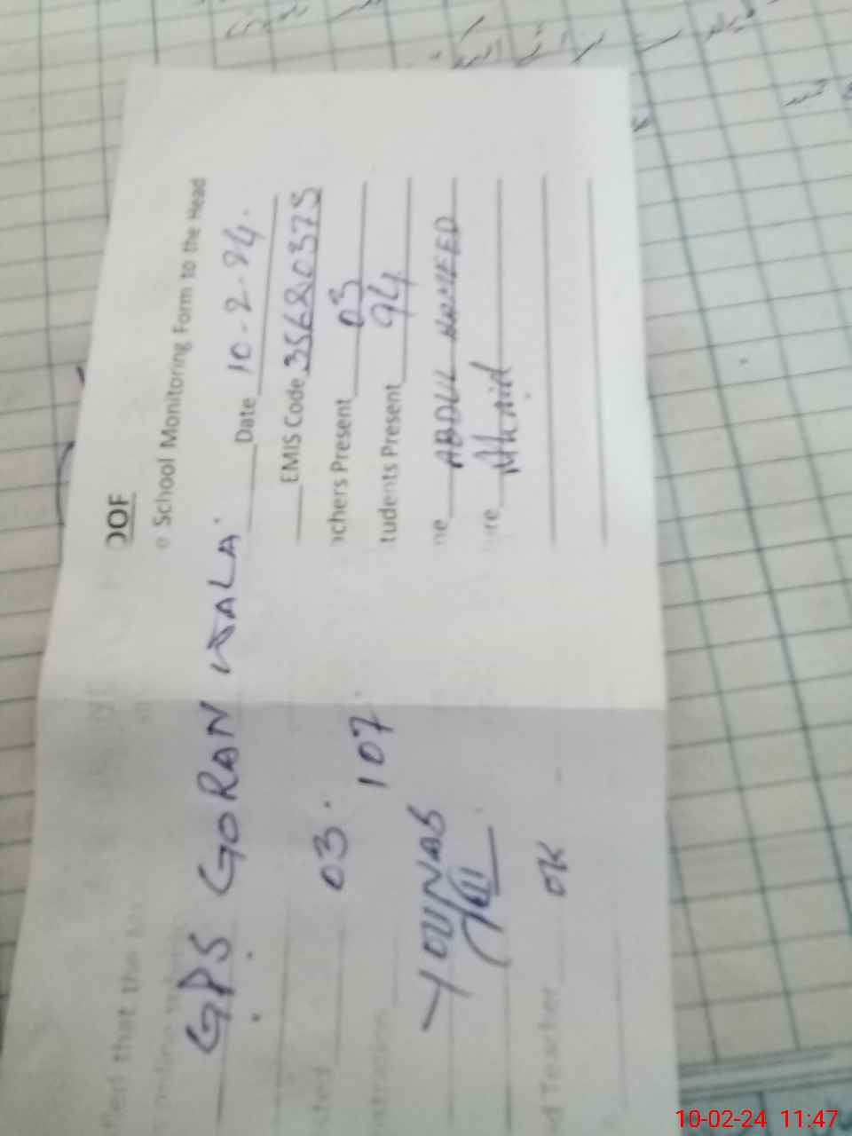 | EMIS Code: 35620373 | Name of School: GPS GAROHAN WALA | |||