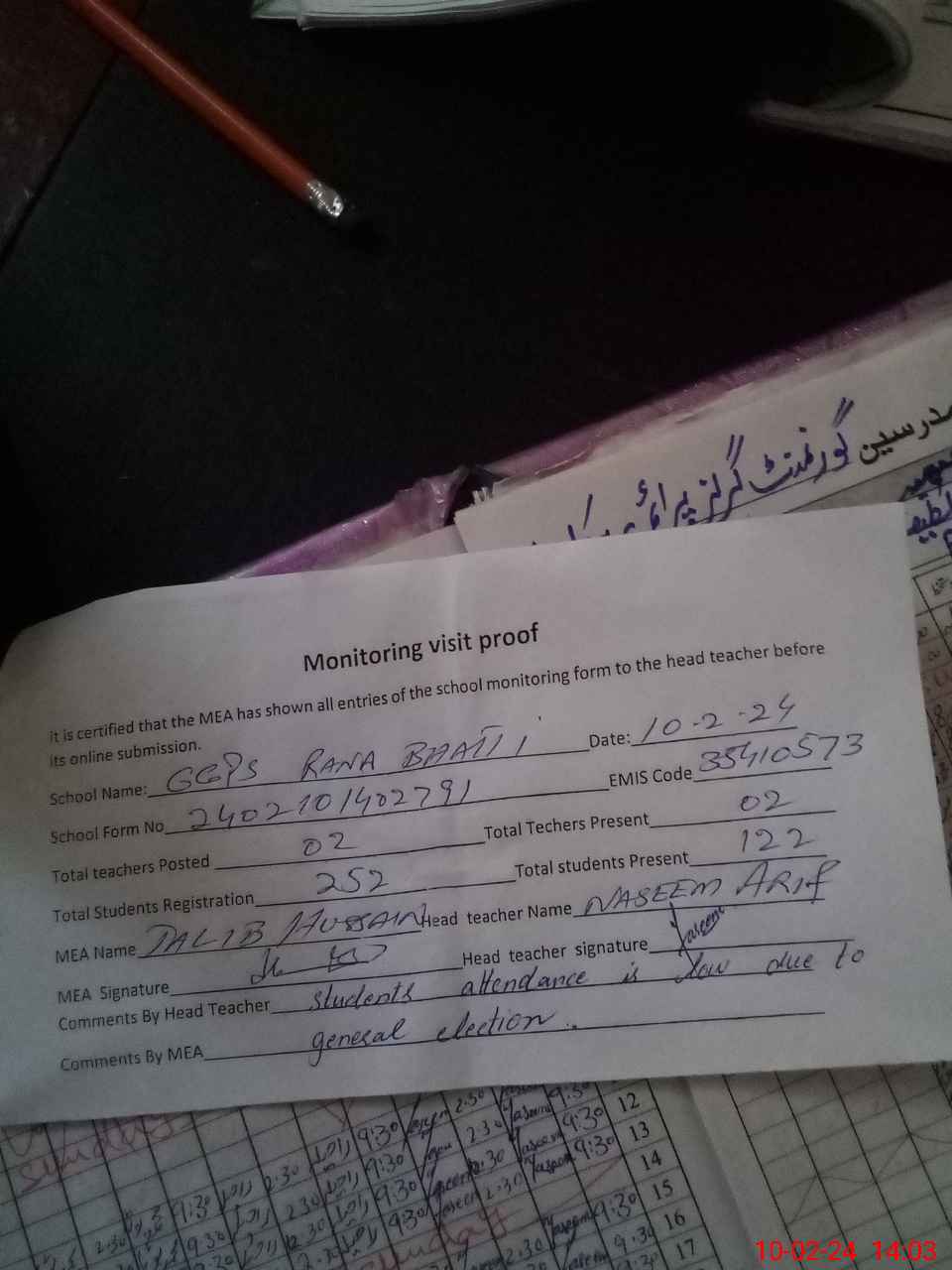 | EMIS Code: 35410573 | Name of School: GGPS RANA BHATTI | |||