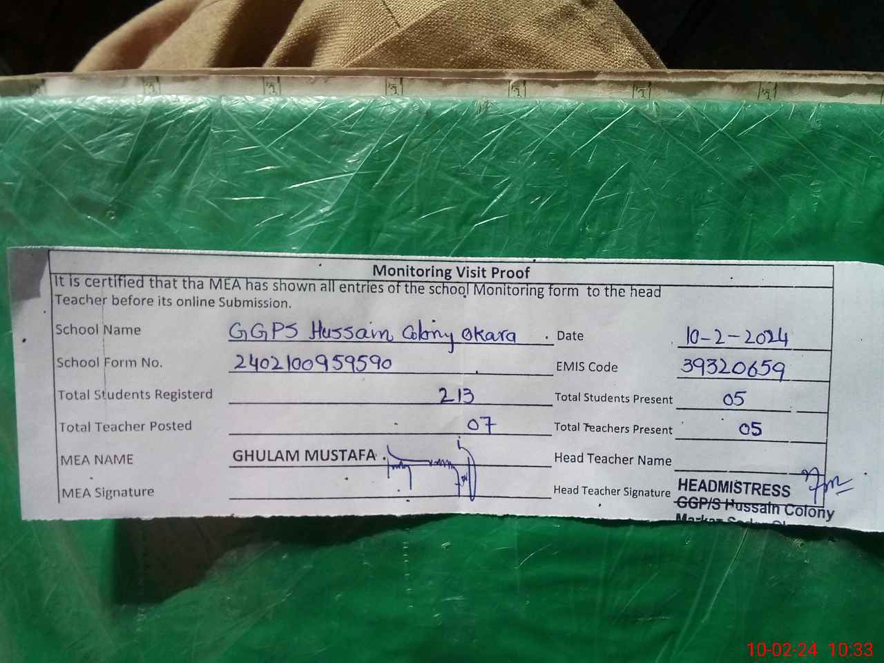 | EMIS Code: 39320659 | Name of School: GGPS HUSSAIN COLONY | |||
