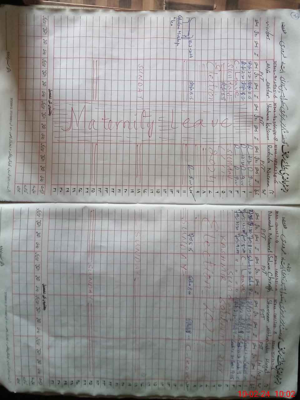 | Leave | Duty | Absent | Maternity | Medical | Ex- Pak |