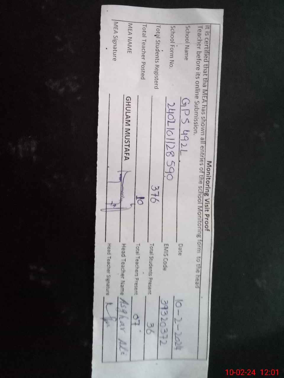 | Certified that this School was Inspected by the Undersigned MEA/DMO Today and the Information Stated Above is as Per Record. | |||||