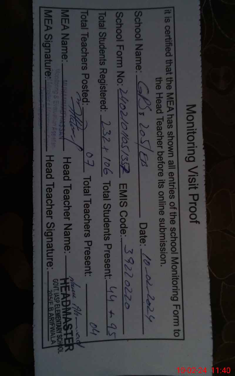 | EMIS Code: 39220220 | Name of School: GPS 205 EB | |||