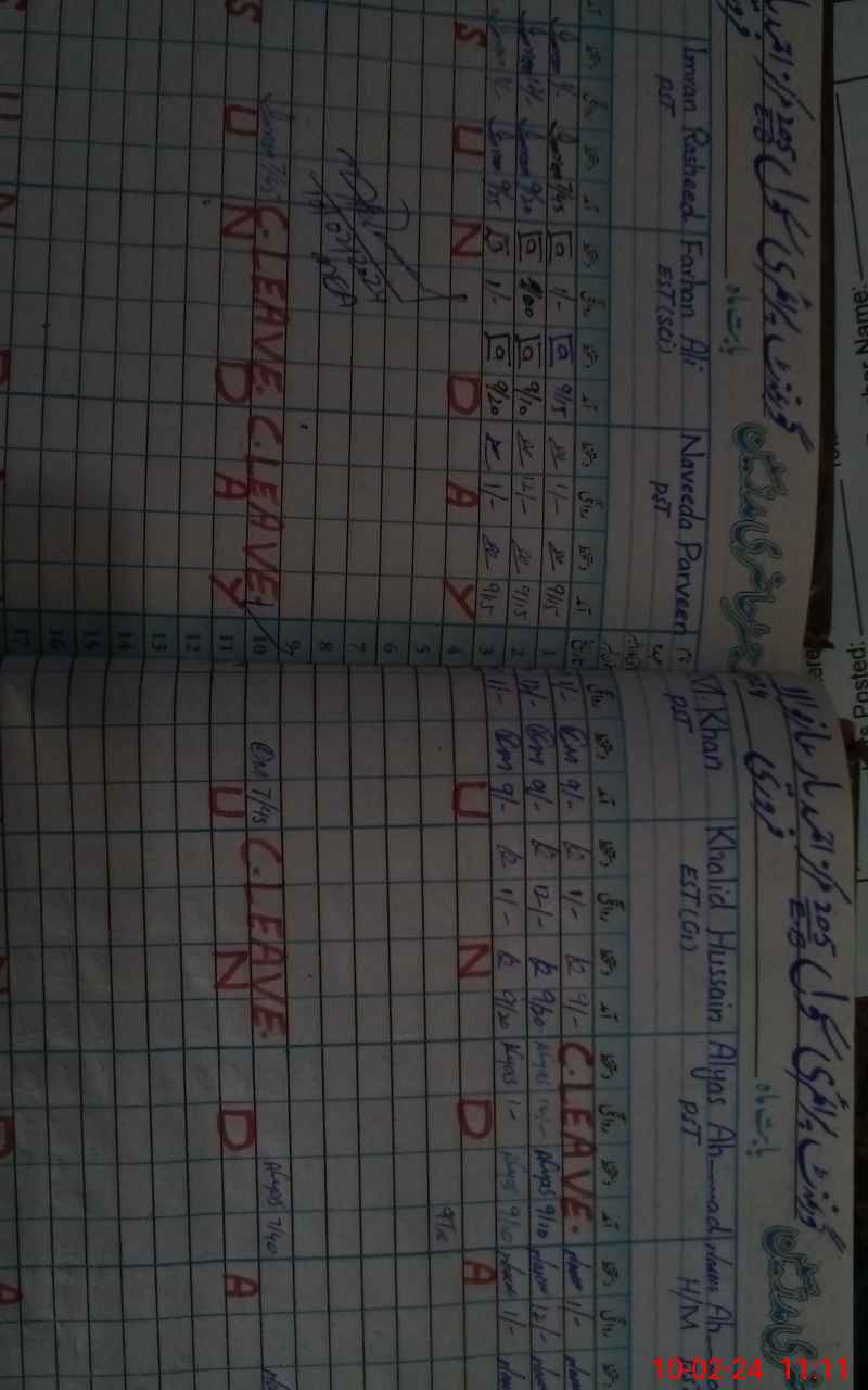 | CNIC | Full Name | Designation | R/C | Absence During Last Calender Month |