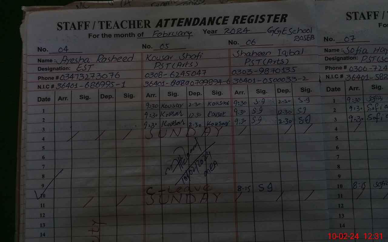 | Name: KH**** SH**** Designation: (School Headmaster's/Headmistress's) S.S.T.(GENERAL) Phone/Cell Number: 03**** |