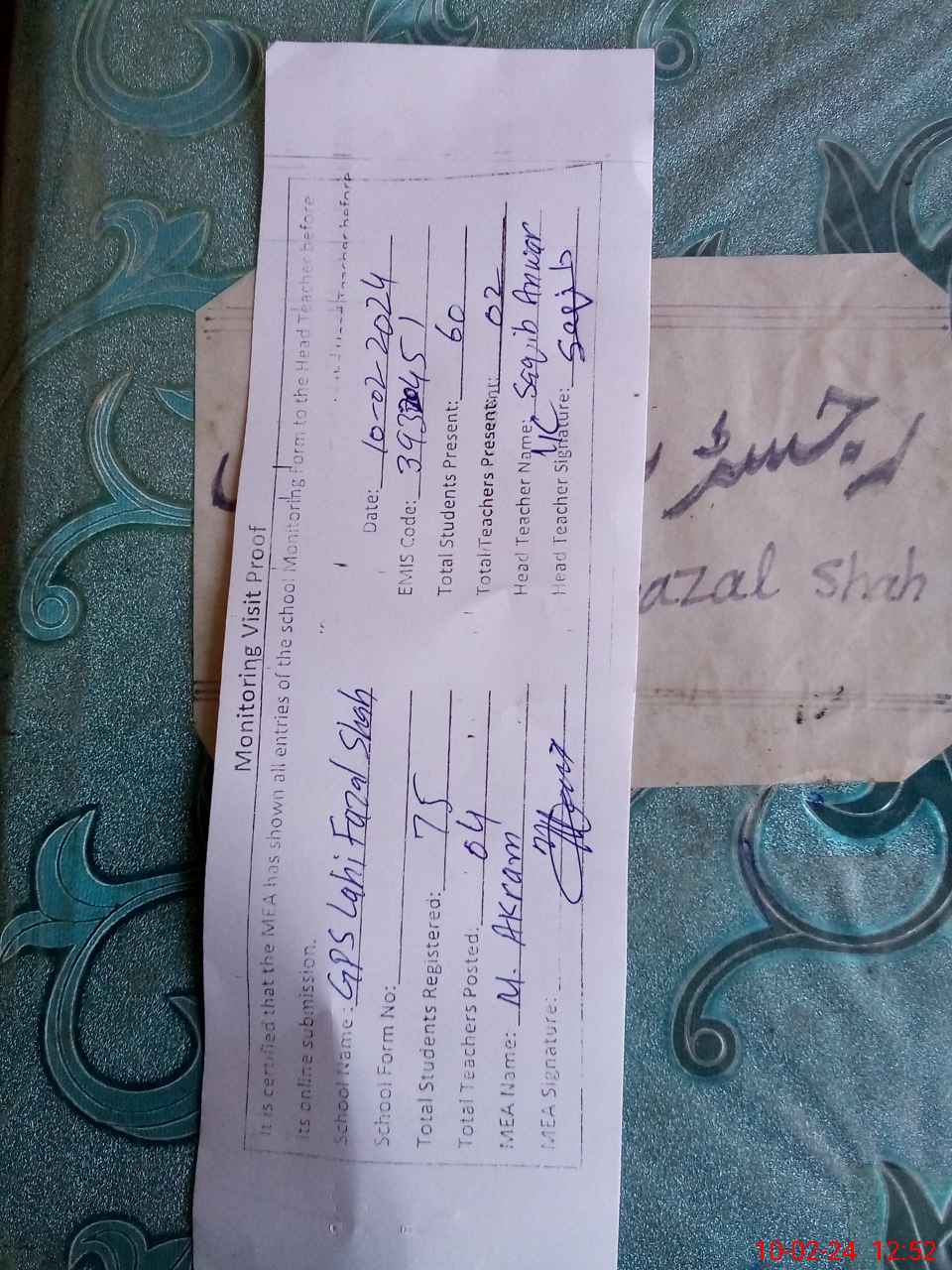 | EMIS Code: 39320451 | Name of School: GPS LAHI FAZAL SHAH | |||