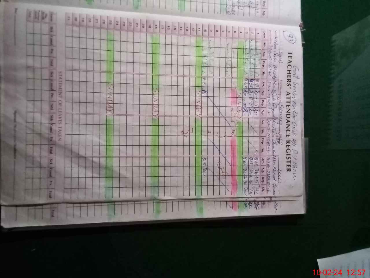 | Leave | Duty | Absent | Maternity | Medical | Ex- Pak |