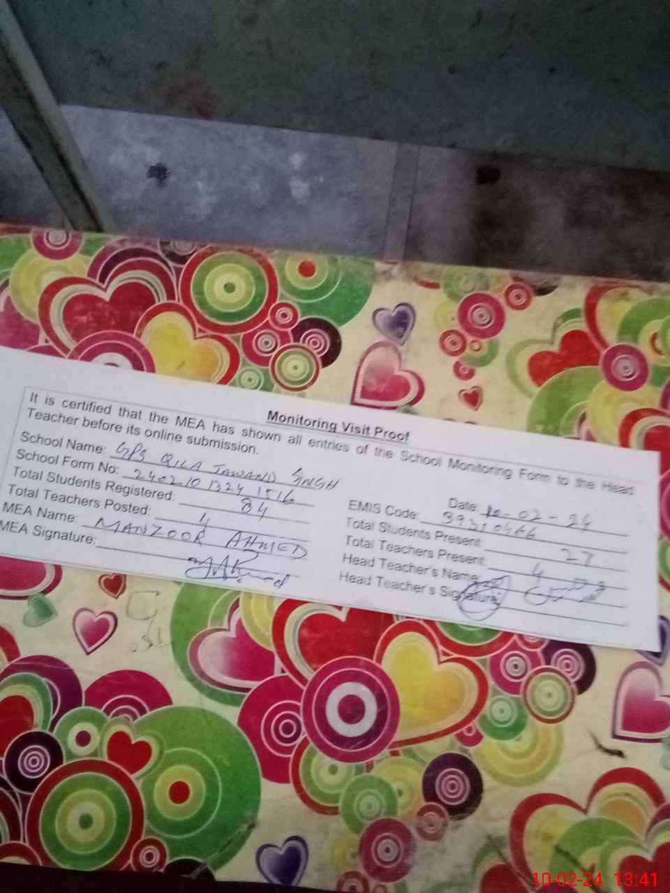 | EMIS Code: 39310466 | Name of School: GPS QILA JAWAND SINGH | |||