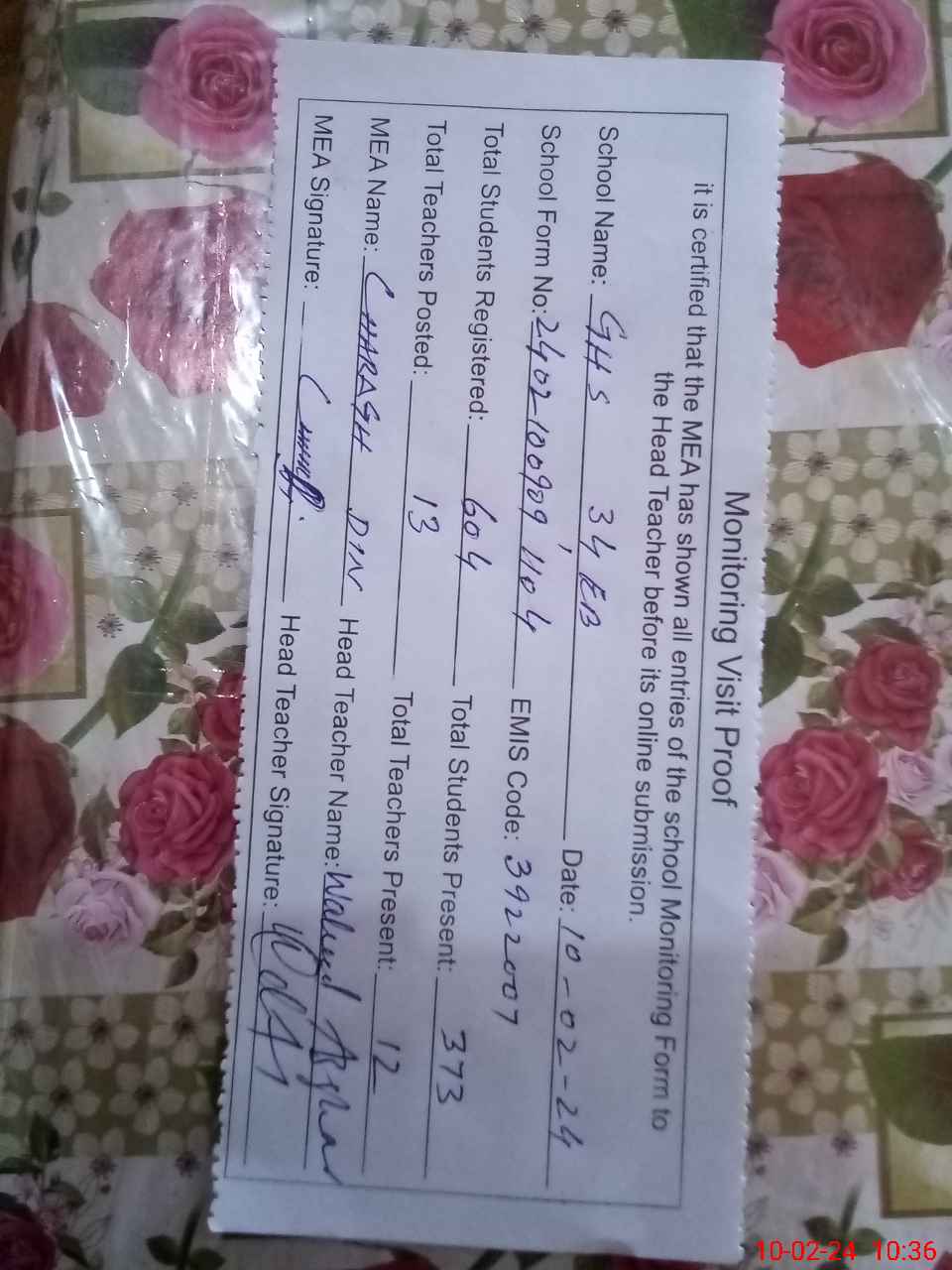 | EMIS Code: 39220007 | Name of School: GHS 34 EB ARIF WALA | |||