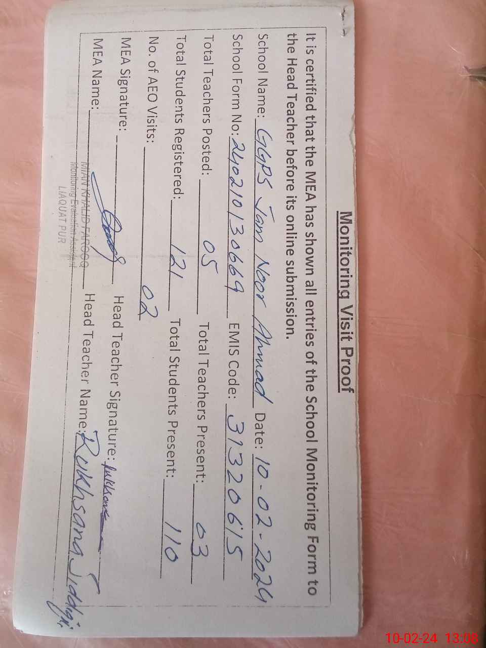 | EMIS Code: 31320615 | Name of School: GGPS NOOR AHMAD LAR | |||