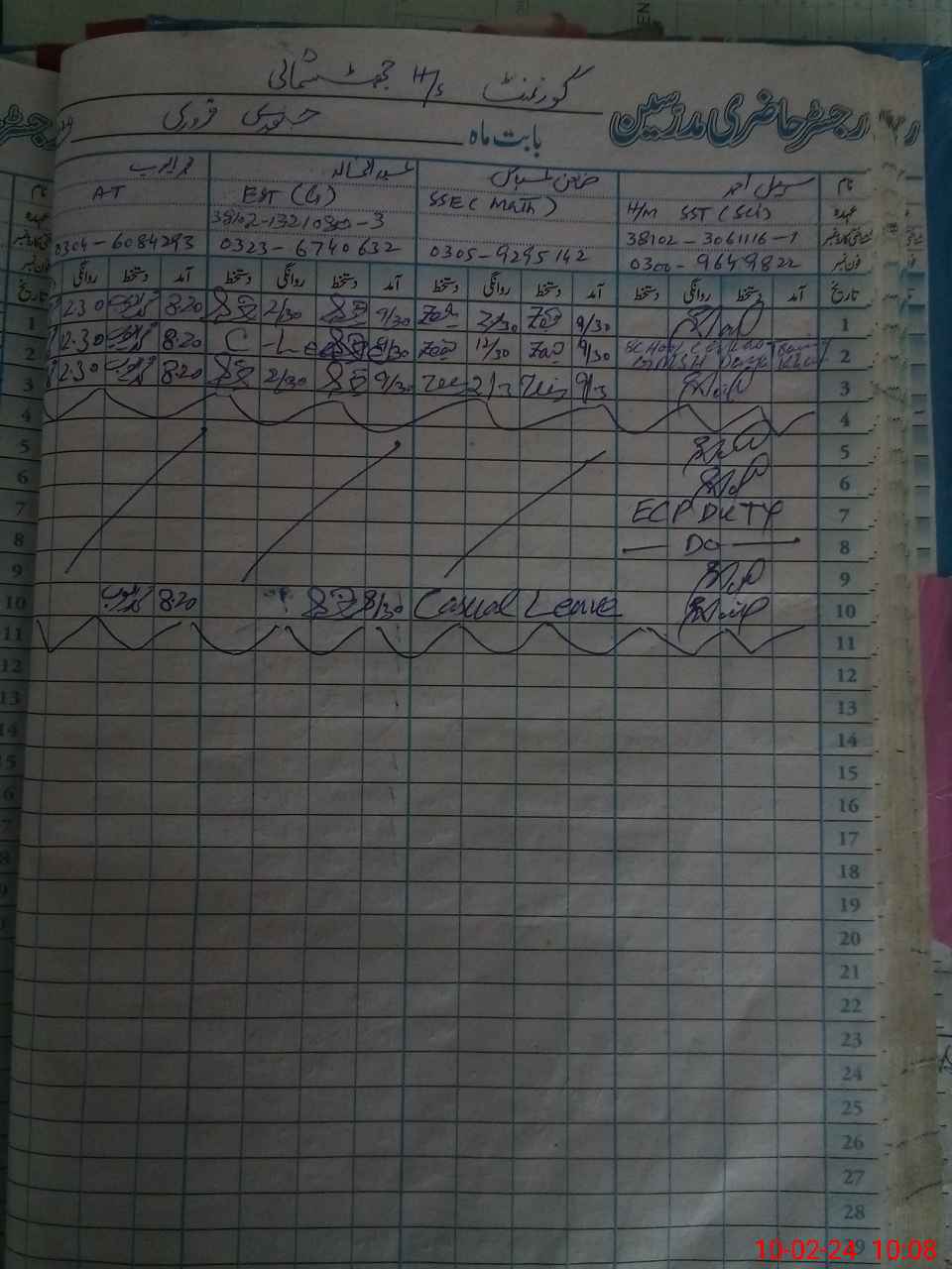 | Leave | Duty | Absent | Maternity | Medical | Ex- Pak |