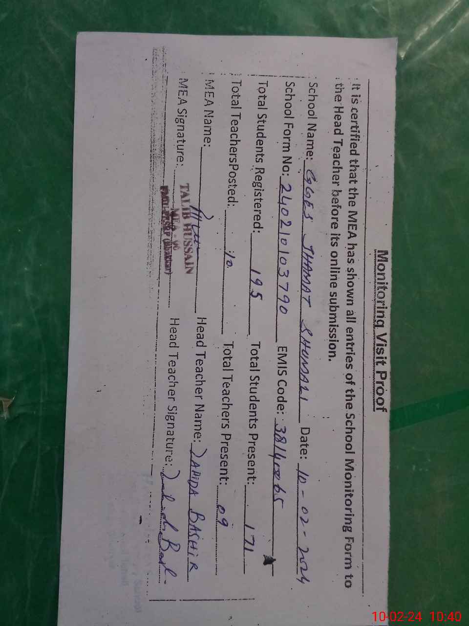 | EMIS Code: 38140065 | Name of School: GGES JHAMAT SHUMALI | |||