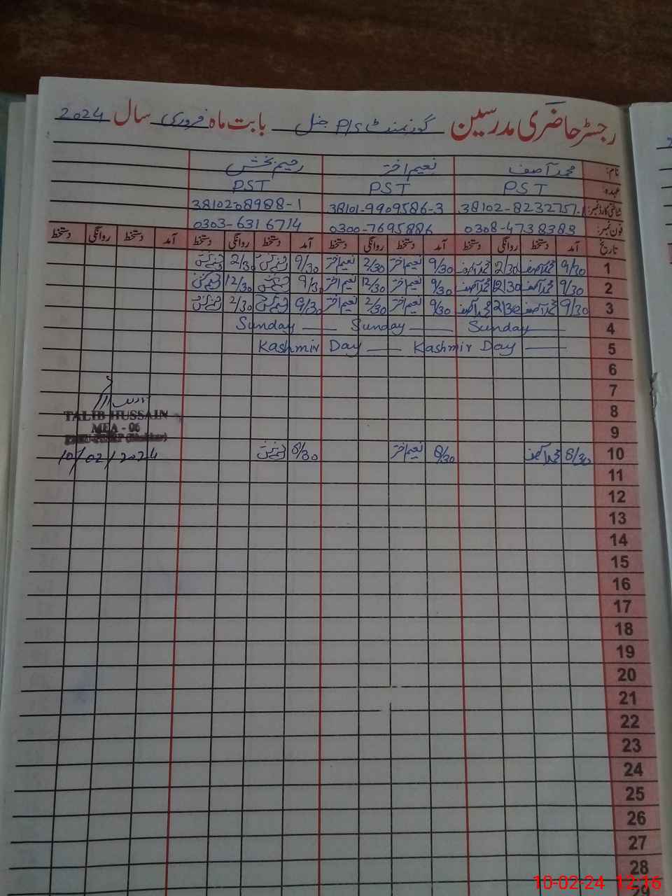 | Name: Mu**** AS**** Designation: (School Headmaster's/Headmistress's) PST SCI MATH Phone/Cell Number: 03**** |
