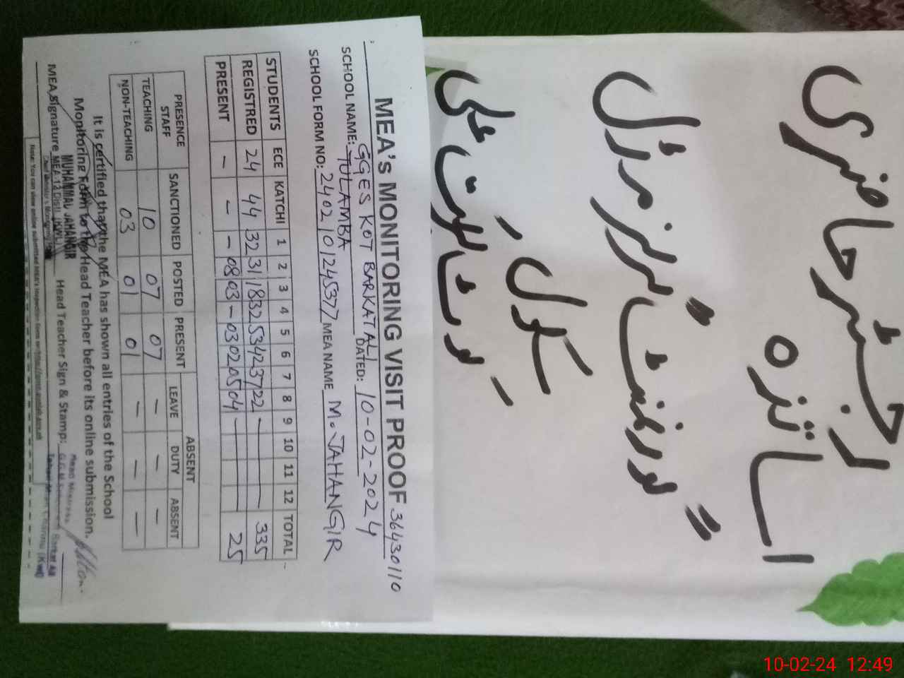 | EMIS Code: 36430110 | Name of School: GGES KOT BARKAT ALI, TULAMBA | |||