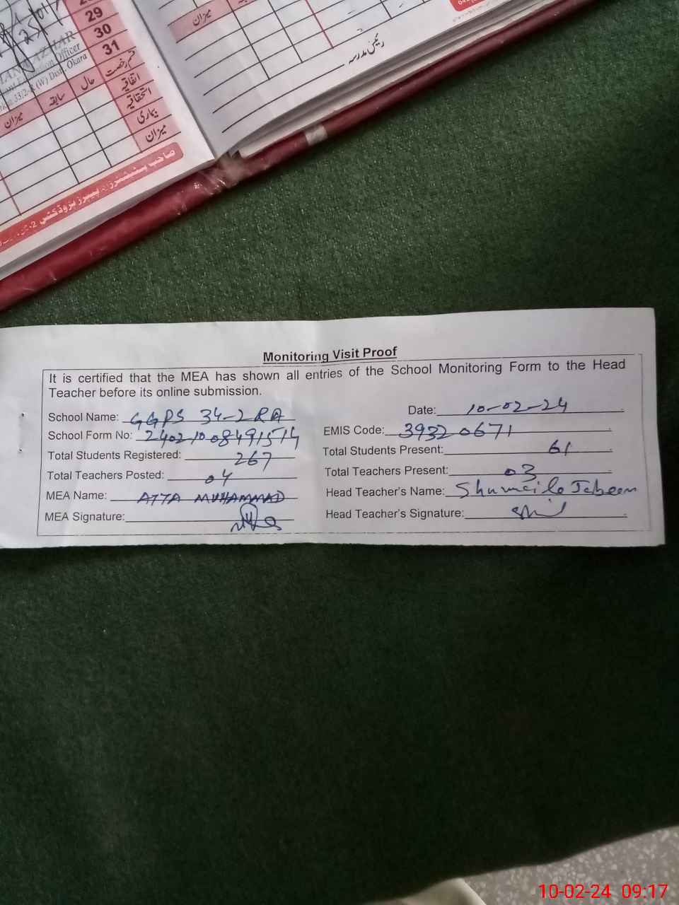 | EMIS Code: 39320671 | Name of School: GGPS CHAK NO.34/2-RA | |||