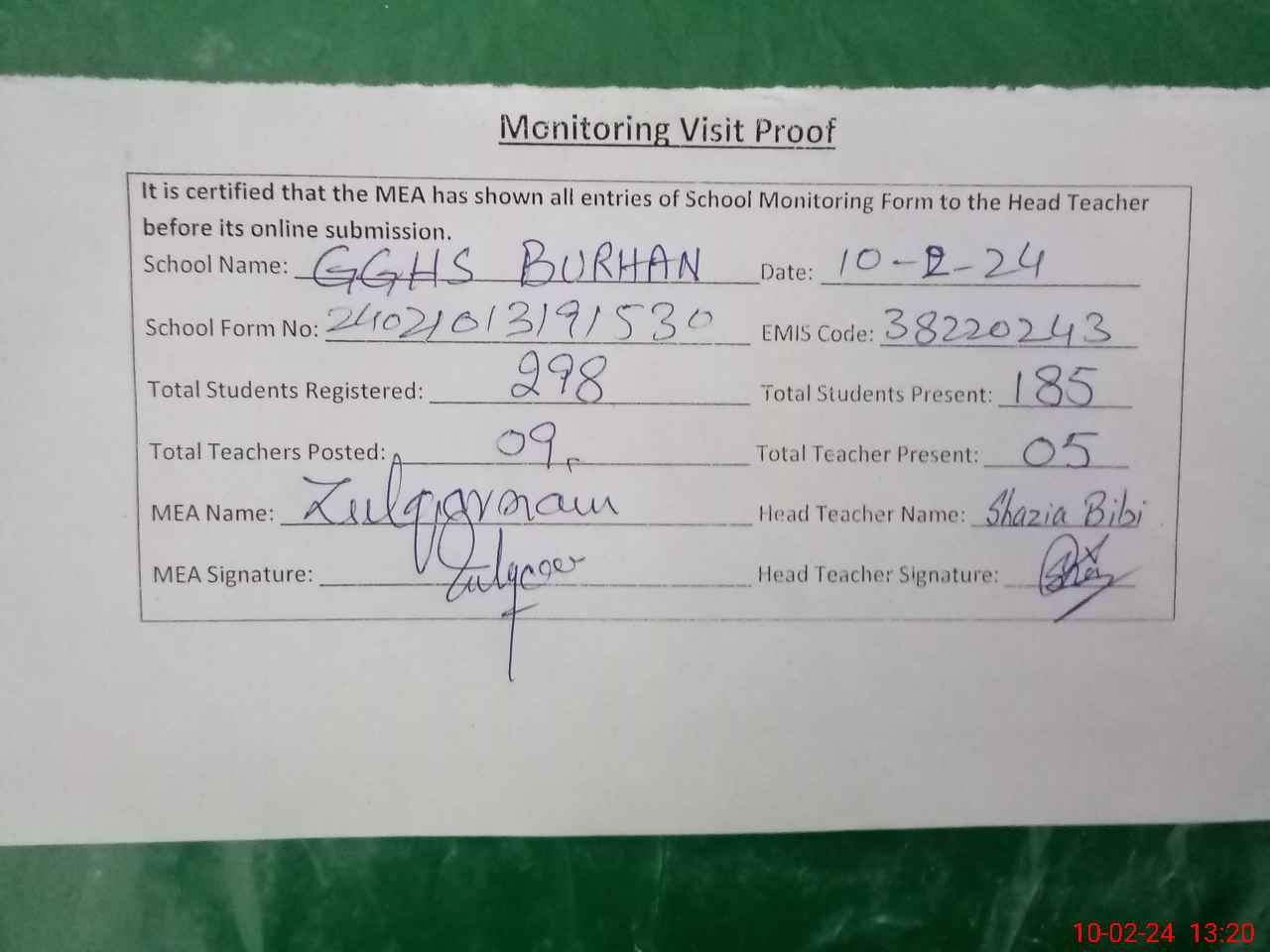 | EMIS Code: 38220243 | Name of School: GGHS BURHAN | |||