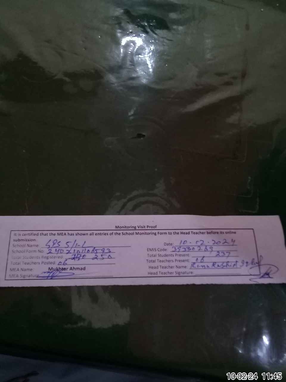 | EMIS Code: 39330269 | Name of School: GPS CHAK NO. 5/1-L | |||
