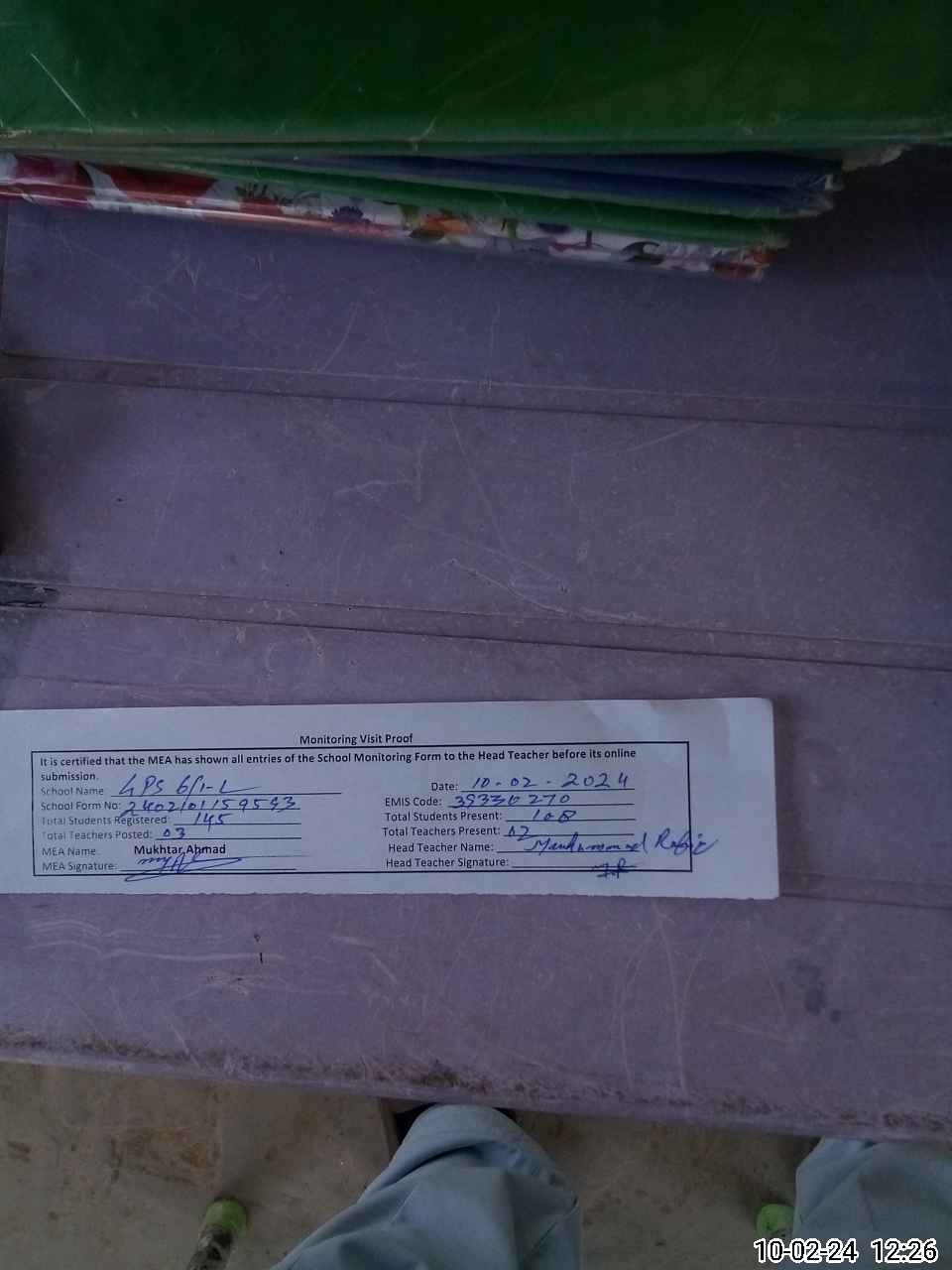 | EMIS Code: 39330270 | Name of School: GPS CHAK NO. 6/1-L | |||