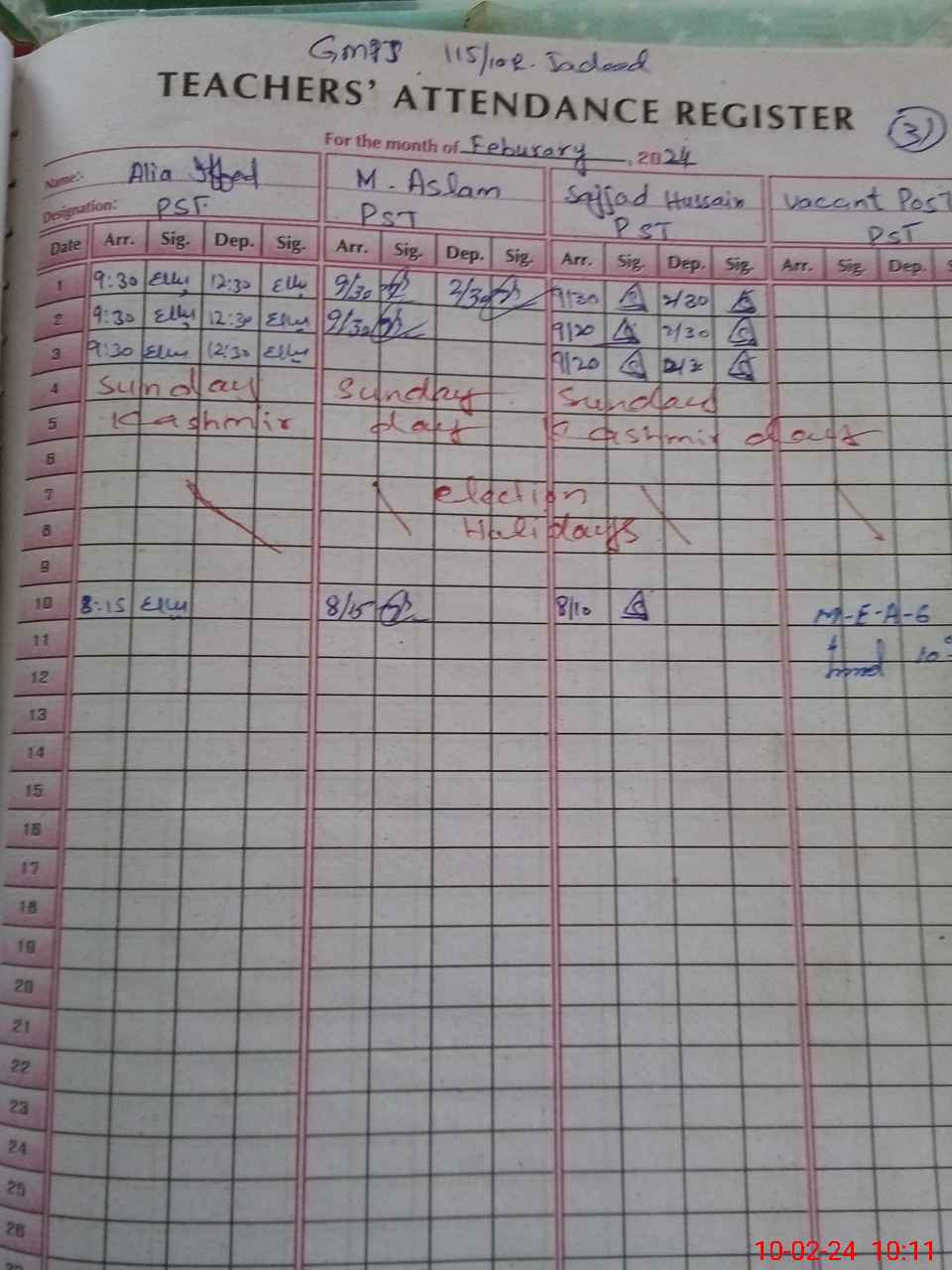 | CNIC | Full Name | Designation | R/C | Absence During Last Calender Month |