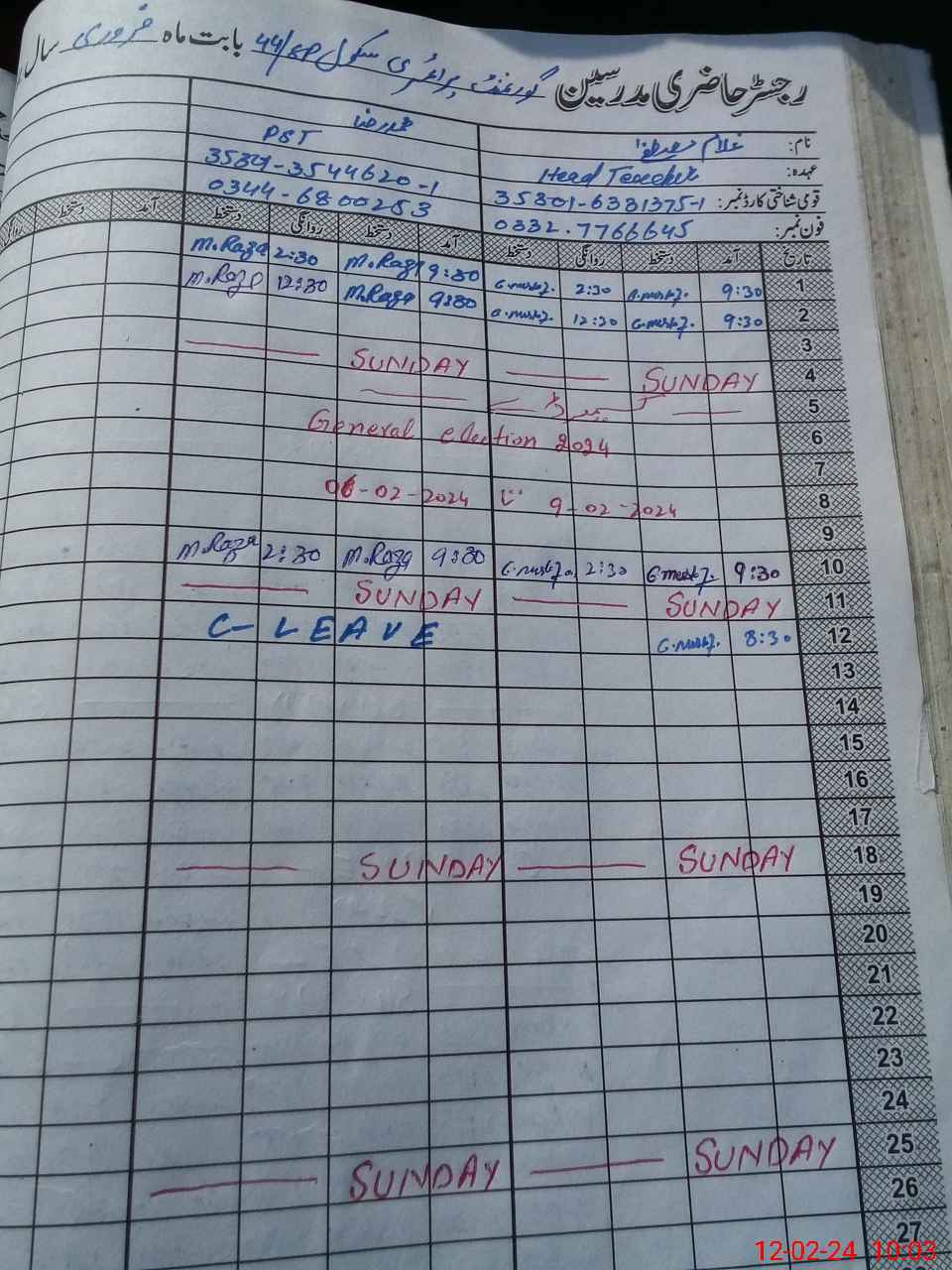 | Name: GH**** MU**** Designation: (School Headmaster's/Headmistress's) PST Phone/Cell Number: 03**** |