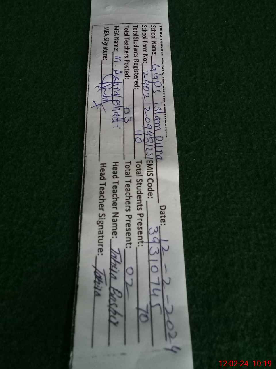 | EMIS Code: 39310745 | Name of School: GGPS ISLAM PURA | |||