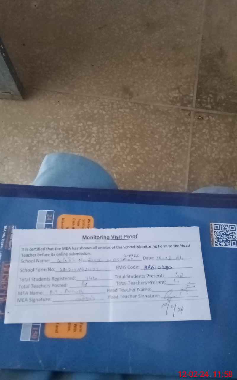| EMIS Code: 36610280 | Name of School: GGPS NOOR UL HASAN | |||
