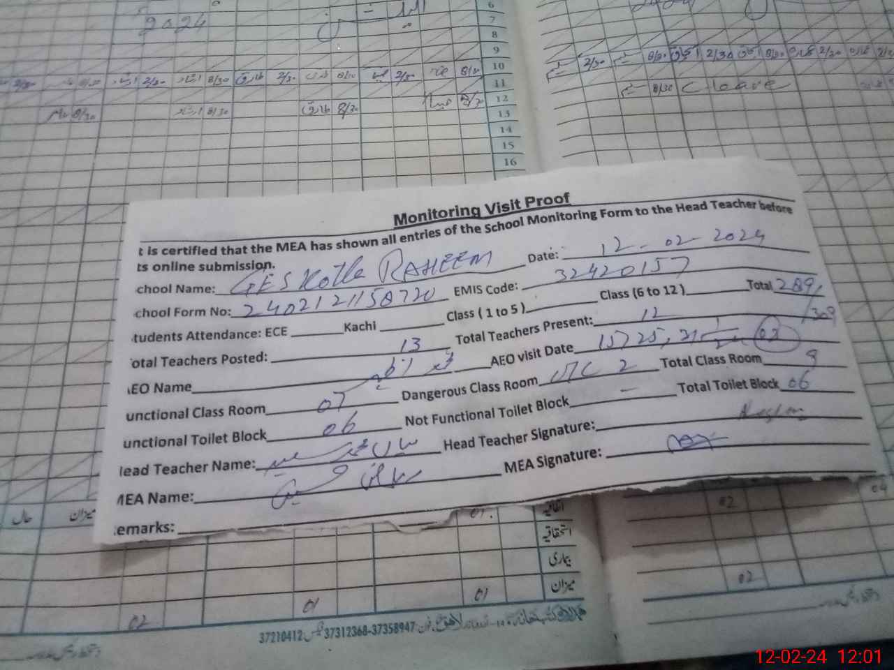 | Attendance Register | Head Teacher | MEA with School | Visit Proof |
