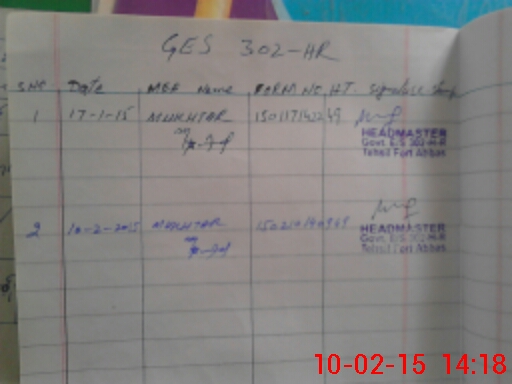 | EMIS Code: 31130231 | Name of School: GES CHAK NO 302 HR | |||