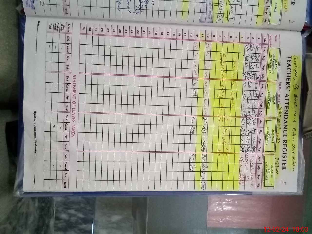 | No. of Students Present - Male | 11 | 0 | 24 | 29 | 27 | 38 | 37 | 37 | 58 | 41 | 28 | 330 | ||||