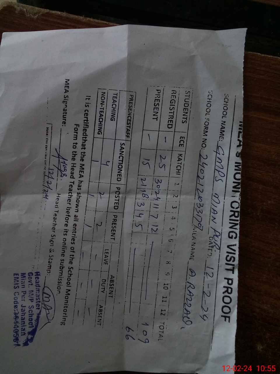 | EMIS Code: 36440561 | Name of School: GMPS MIAN PUR, JAHANIAN | |||