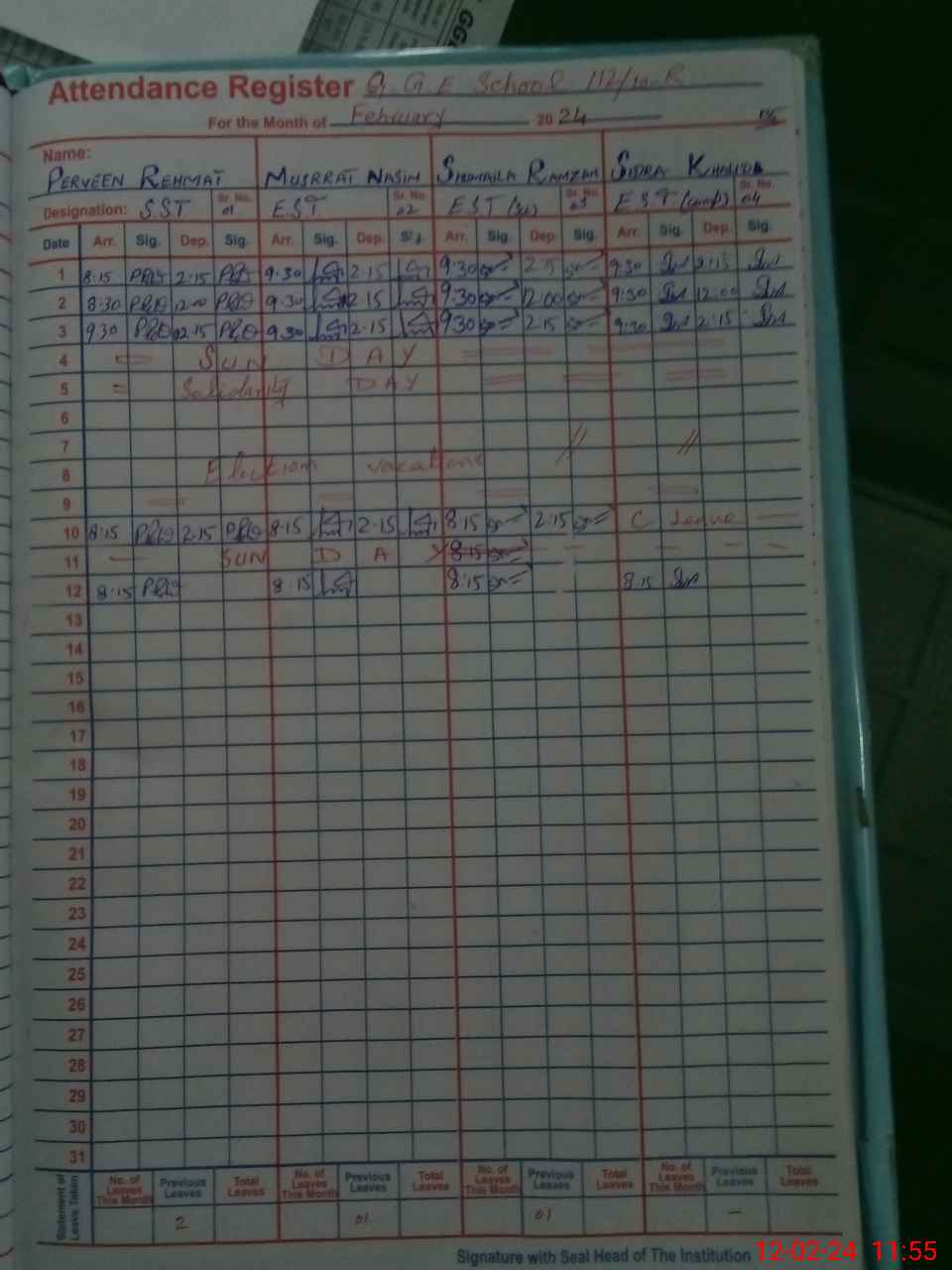 | 36**** | Ay**** Re**** | 3 | 1 | 0 | 0 | 0 | 0 | 0 | 0 | 0 | 0 | 0 | Absent (Un-Authorized) |