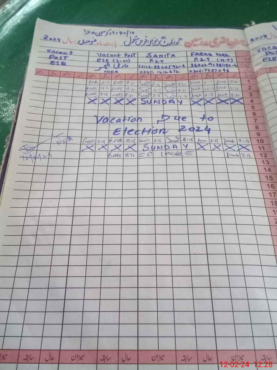 | Leave | Duty | Absent | Maternity | Medical | Ex- Pak |