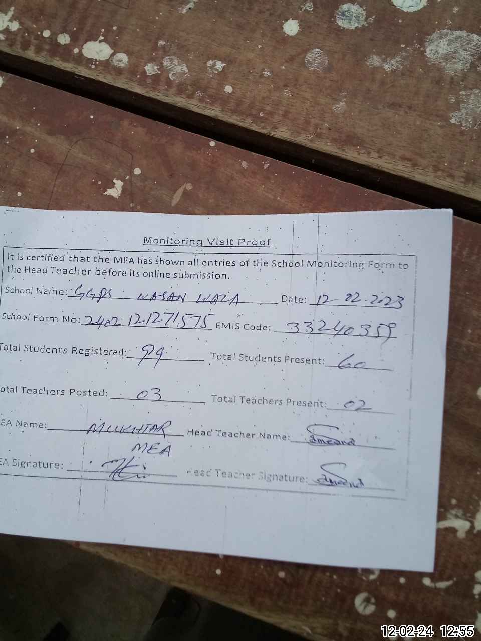 | EMIS Code: 33240359 | Name of School: GGPS WASSAN WALA | |||